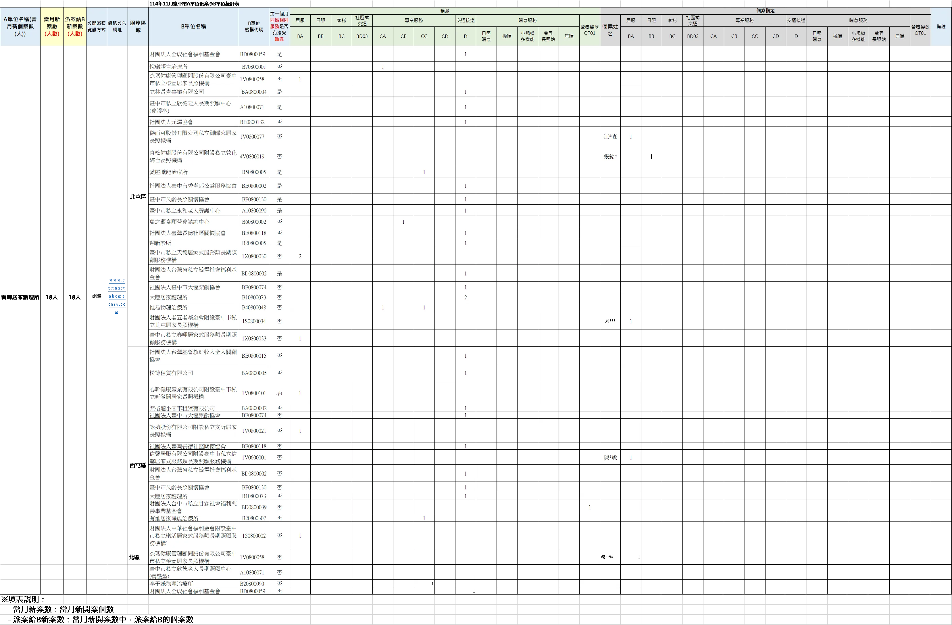 首頁 > 最新消息 > 每月輪派統計 > 114年度 > 114年11月A單位派案予B單位之服務案次統計表